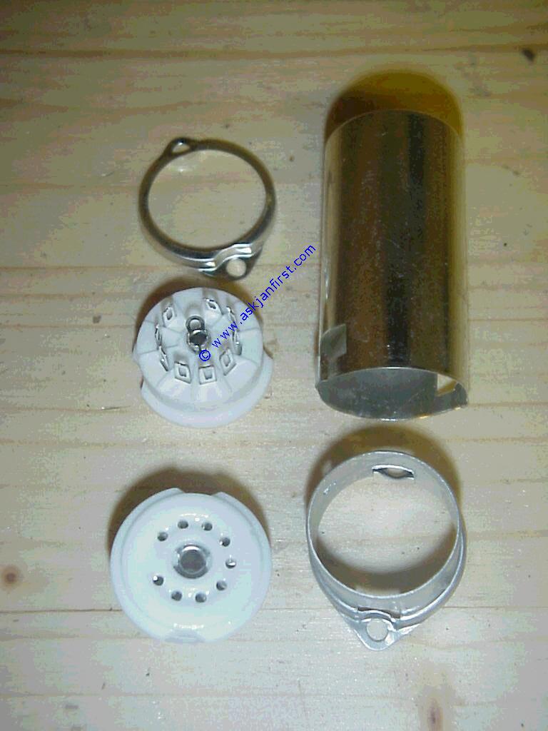 FAS153 | Fassung Loktal mit Abschirmbecher Keramik für russ. Patronenröhren | Loktal ceramic with shielding can | Embase Loctal russe céramique pour les tubes militaires russes | 5,00 |