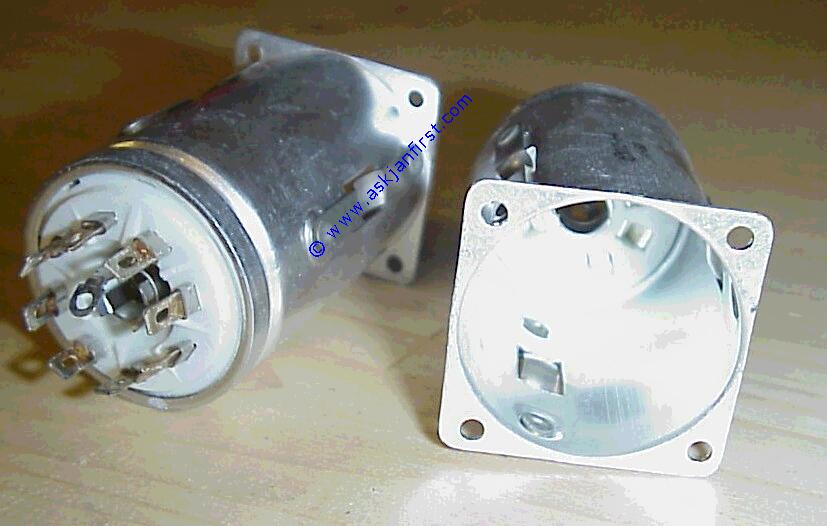 FAS061 | Fassung für Poströhren fünfpolig, laufende Fertigung, Keramik, hervorragende Qualität. Lieferung mit mikrofoniemindernden Gummiunterlagen, die gleichzeitig eine mechanisch spannungsfreie Montage ermöglichen. Diese Fassungen haben keine fest eingenieteten, sondern bewegliche Kontakte, dadurch werden Passungsprobleme im Rahmen der teilweise recht hoen Sockeltoleranzen vermieden. | Socket for Siemens Post-tubes 5 pin new stock ceramic, high quality, comes with rubber washers for stress free low microphony mounting. This version´s contacts are not riveted but mounted in a way that tolerances of the tube bases can be compensated so any post tube will fit easily | Siemens Socket / Embase Post 5 pour C 3 d etc. Ceramique, haute qualité | 4,00 | 4,76 |