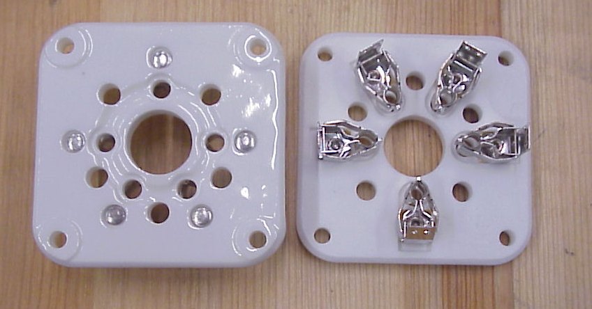 | FAS028-9 | B5 (passen auch B4 Röhren ) Fassung auf Keramikplättchen von Keramische Werke Hermsdorf, also original deutsche Fertigung, die hübsche Version mit den versenkten Löchern, Neuware. | B5 ( fits B4 based tubes as well) ceramic GERMAN MADE socket, NOS, made by Keramische Werke Hermsdorf, Tridelta, nice version, silvered contacts NOS | Embase B 5 pour les tubes anciens europeens, neuf, fabrication allemande. Très joli. | 8,00 | 9,57 |