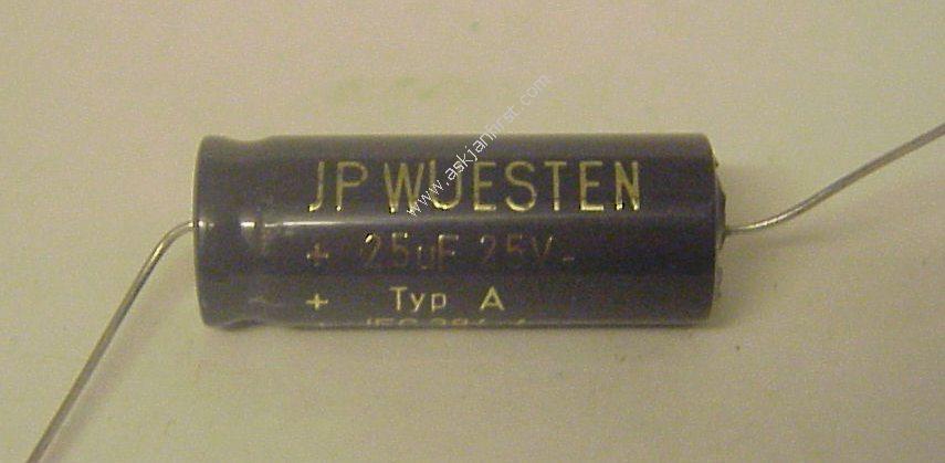 Doppelaxial 2*25 µF 25 V | 2*25uF 25 V twin axial electrolytic | 2*25uF 25 V double capacitance, fils axiaux | 7,10 |