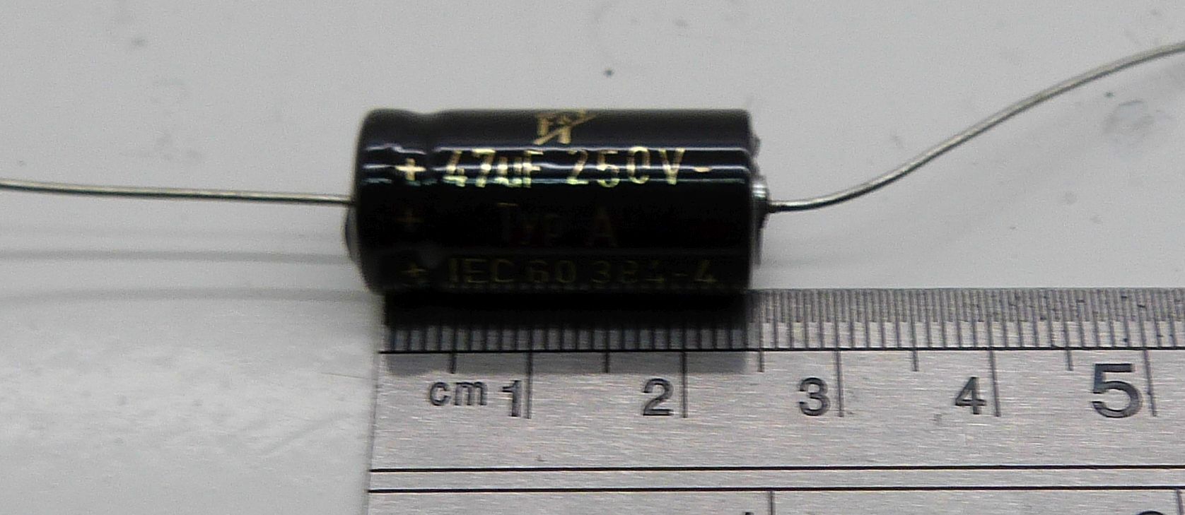 KONEK47 | 47 uF 500 V 21*40 mm² | 47 uF 500 V axial leads. |