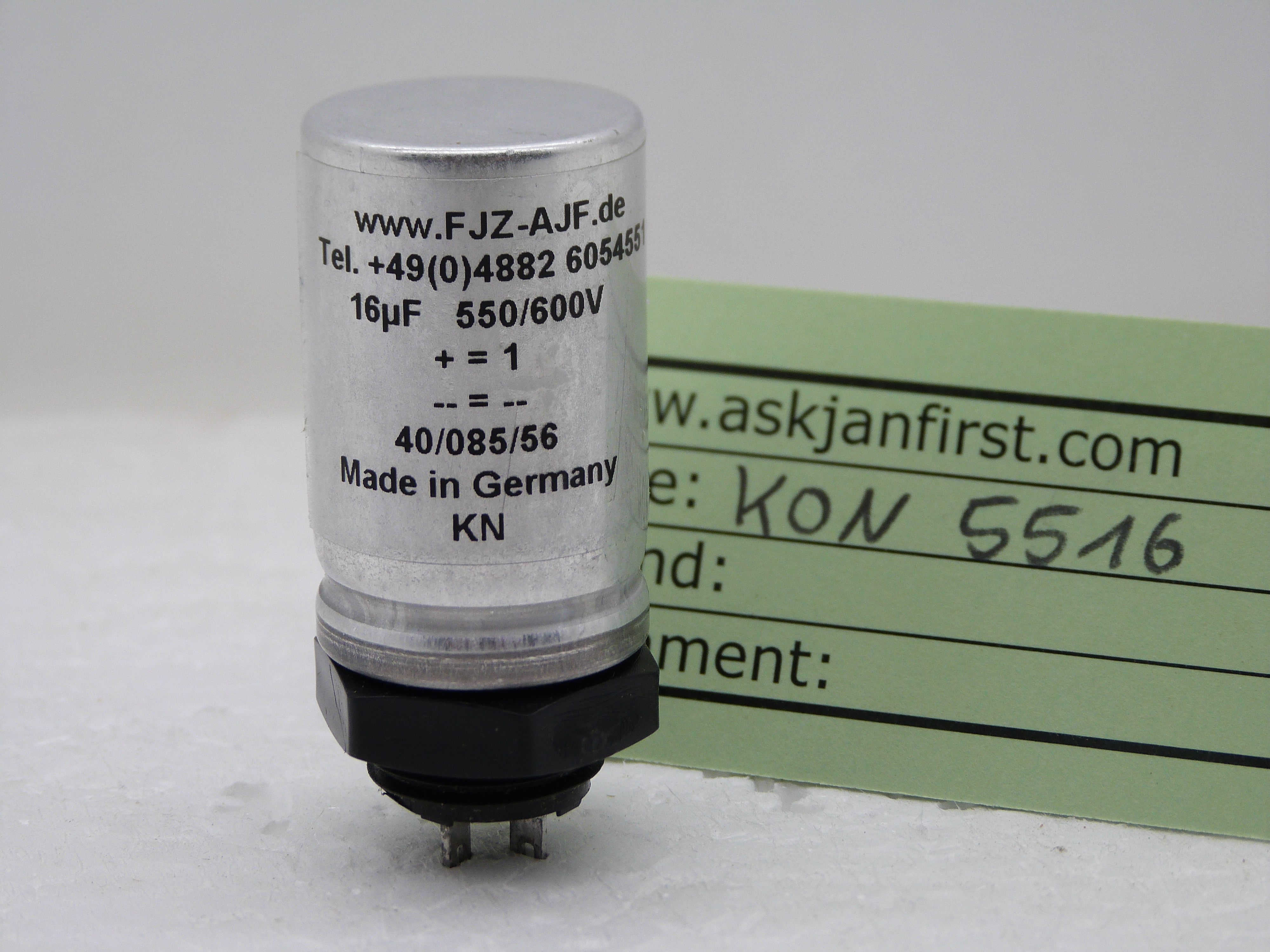 KON5516 | Schraubelko, einmal 16 uF bei 550 V in 25*50 mm². Ersetzt auch 1*8uF und 1*10-12uF | Screw mount 16 MFD 550(600V surge) electrolytic, made by F&T, for many many 1930´s radios | Chimique 16uF 550/600V. Montage avec Vis centrale de 18 mm. Très utile pour les vieux radios | 12,80 |
